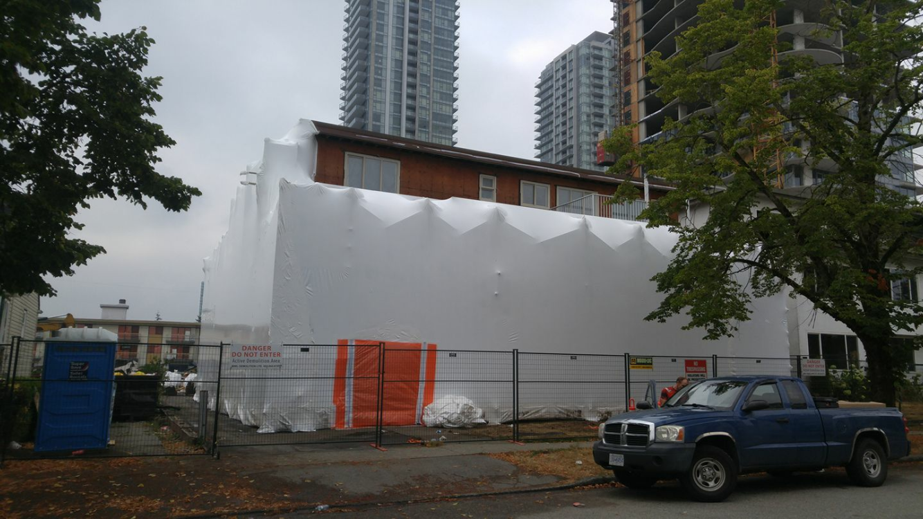 Our team put up this job in Burnaby today to keep both the public and the workers safe while removing the hazardous materials on site.