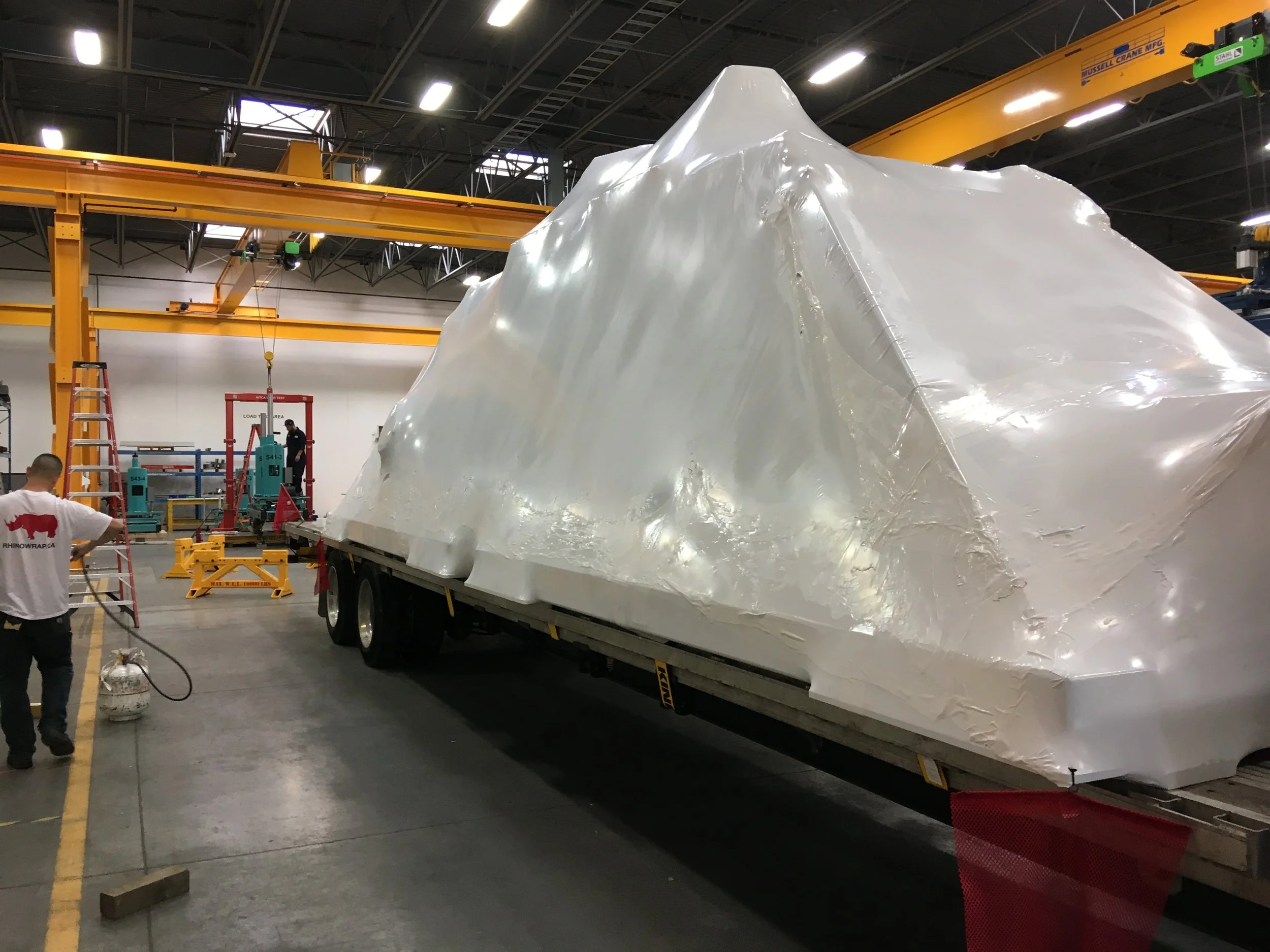 This is a collaboration between United Scaffold Rhino Shrink Wrap.